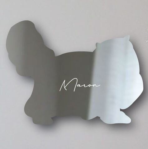 シルエット型に切り抜かれたペットのオリジナルシルエットシェイプミラー鏡です。